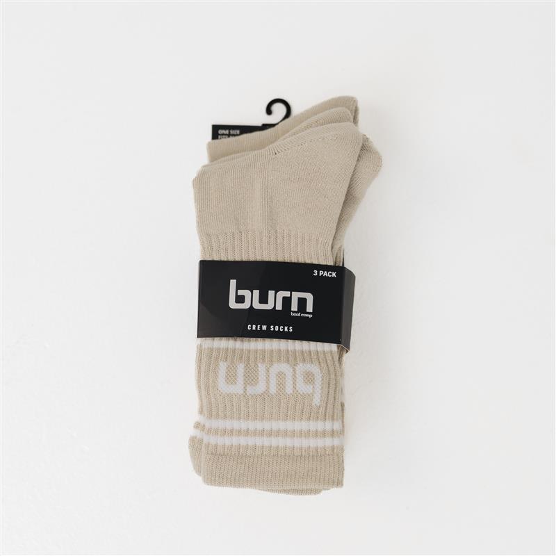 Description: Everyone's favorite sock, is now offered in a new color! These socks feature a crew-length and the Burn logo above the ankle. Each purchase includes three pairs for ultimate style and comfort.