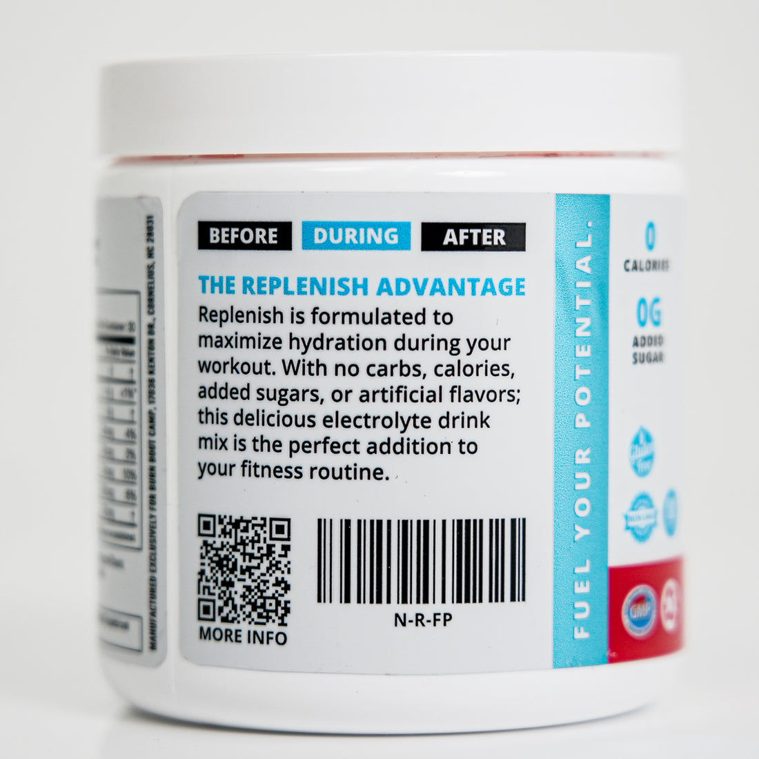Replenish is formulated to maximize hydration during your workout. With no carbs, calories, added sugars, or artificial flavors; this delicious electrolyte drink mix is the perfect addition to your fitness routine.